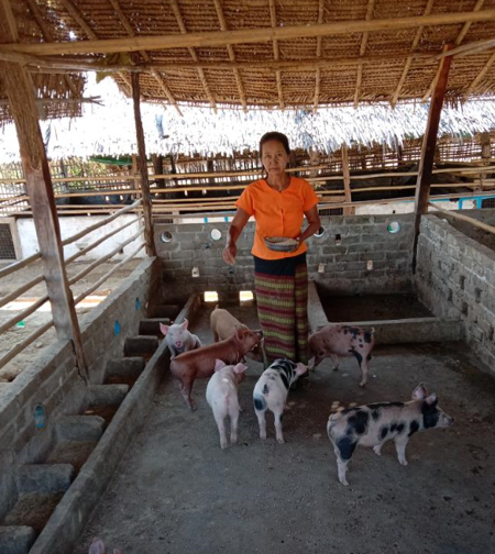 Daw Khin Htwe lives in Kapyo Village which is situated in Nat Mauk Township, Magway Division and she is doing pig breeding as an in-house business to support their family income.